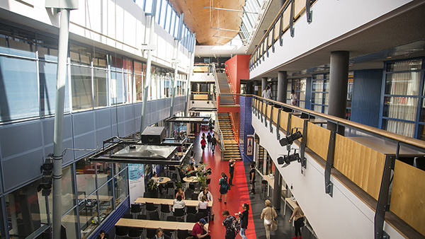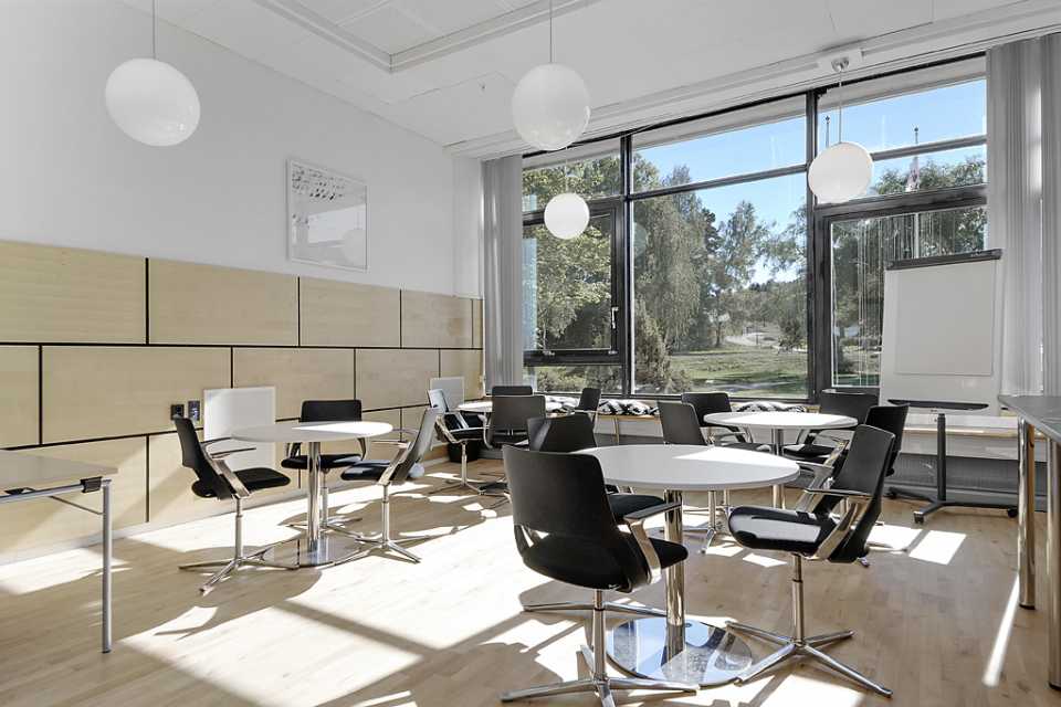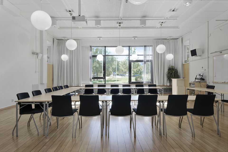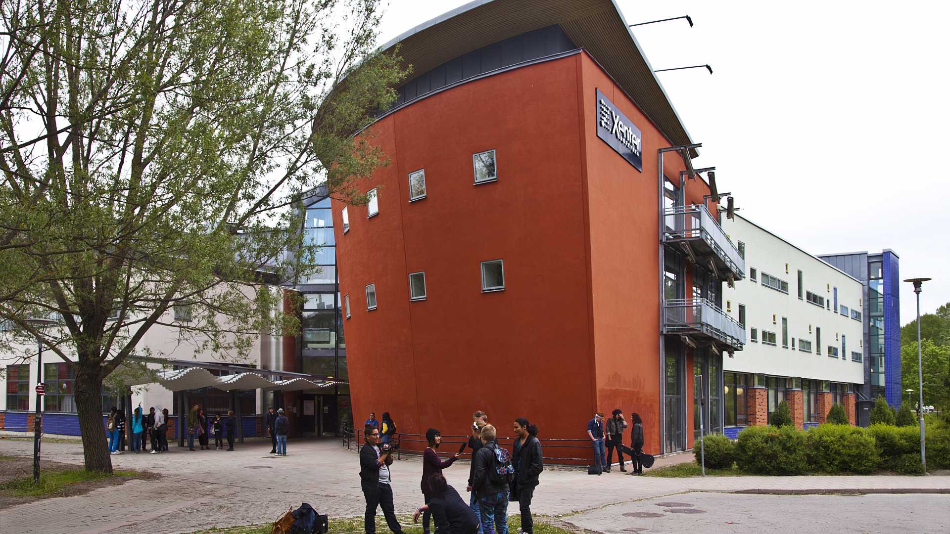 Det finns gott om grupprum och undervisningssalar i olika varianter och studiemiljön är både lugn och kreativ. I lokalerna finns en restaurang som serverar lunch och fika och vi har även en egen studentbar där du kan värma din egen mat. Vi har också studior och olika labb som i hög grad är integrerade i utbildningen.